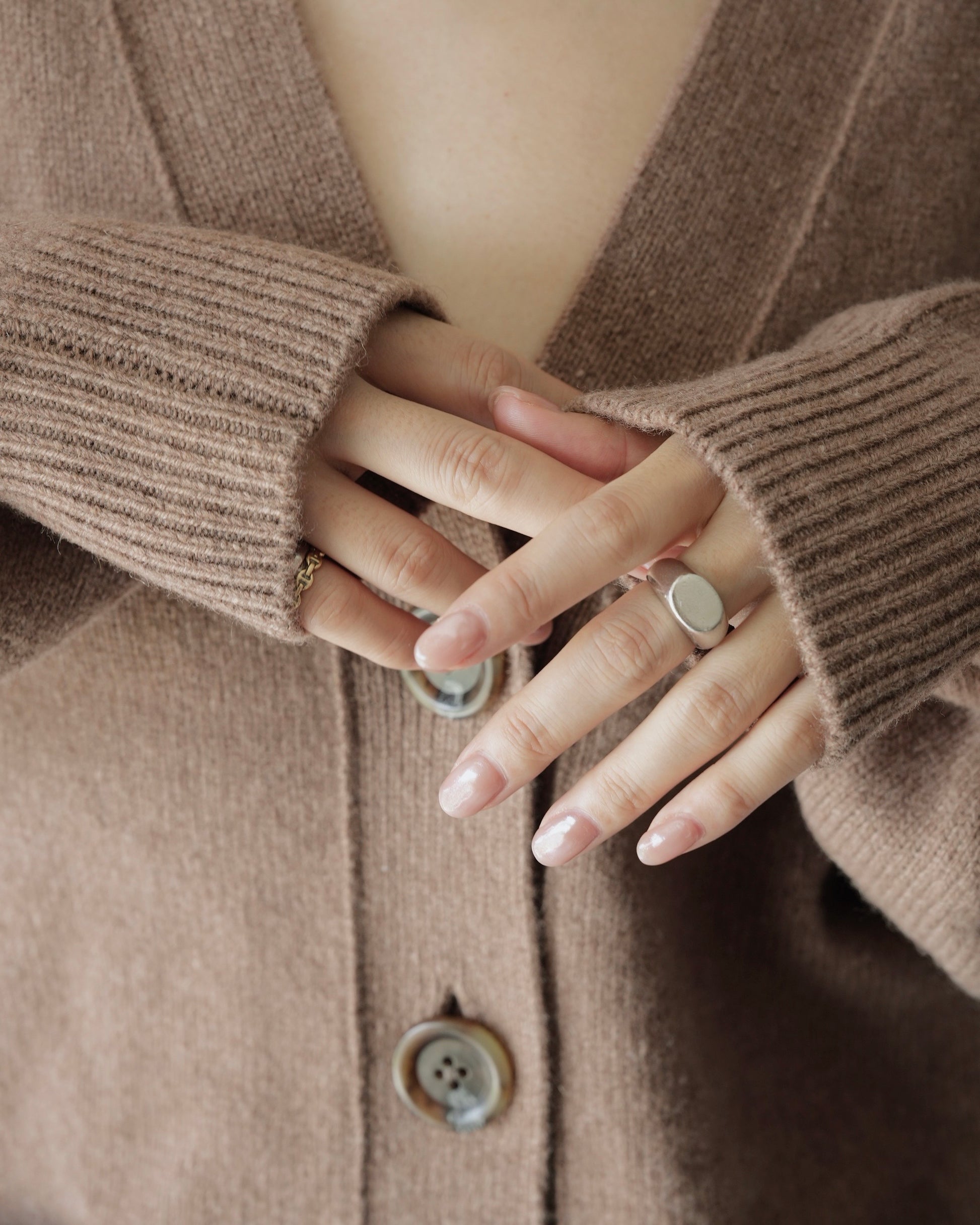 同素材で作ったカーディガンです。敢えてロゴや刺繍は入れず、とにかく毎年、何年も着ていきたい着心地抜群×シンプルでお洒落な一点を目指して作りました。